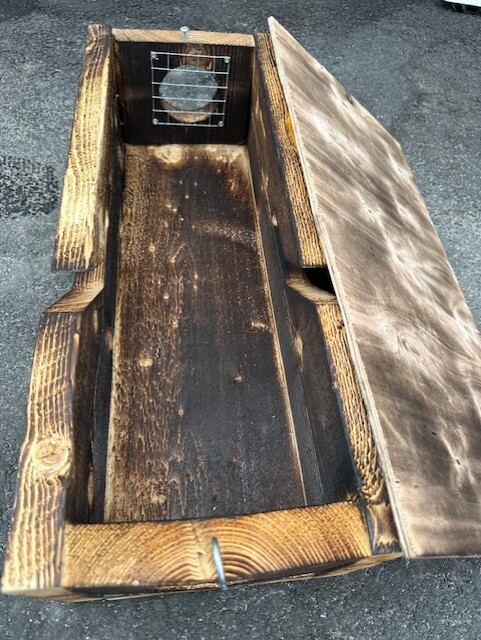 Tehokas kotimainen käyttövalmis hetitappava loukku minkille ja näädälle. Erittäin luja rakenne. Valmistettu puusta ja vanerista. Kevyt ja turvallinen irrotettavalla kammella. Voit laittaa minkä tahansa oman laukaisimen loukun sisälle. Yksi sisäänmenoaukkoa, jonka halkaisija on 78 mm.